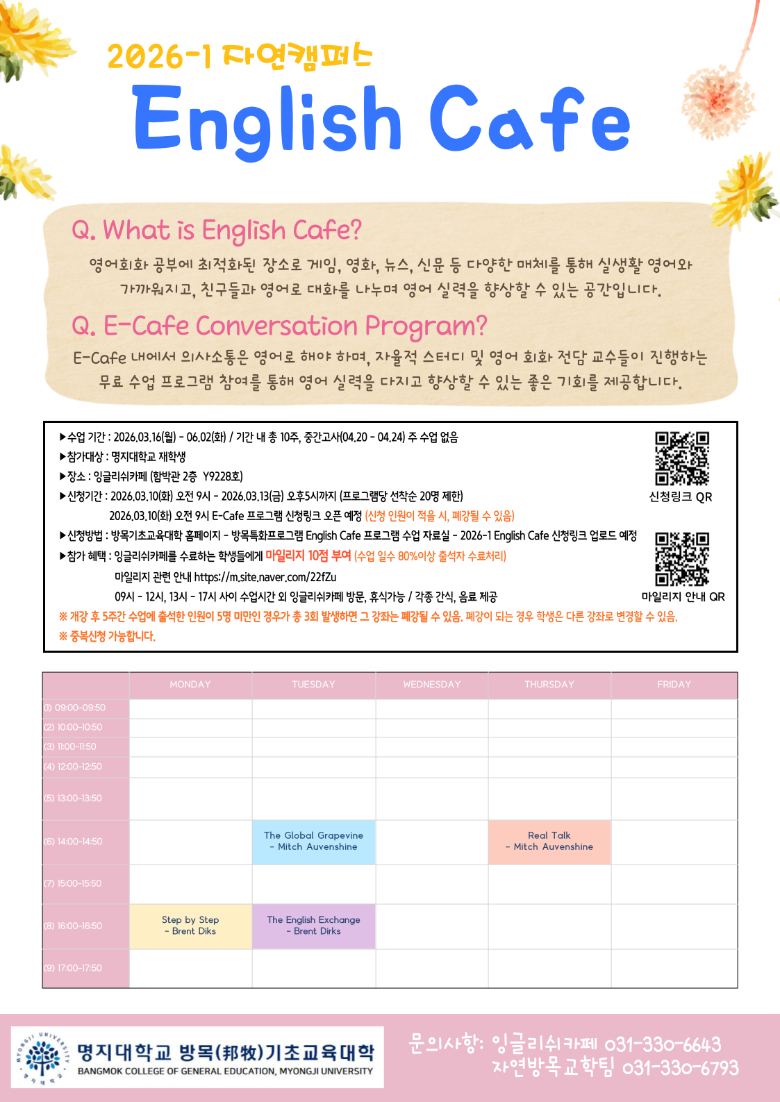 2026.03.10(화) 오전 9시 E-Cafe 프로그램 신청링크 오픈 예정 (신청 인원이 적을 시, 폐강될 수 있음)